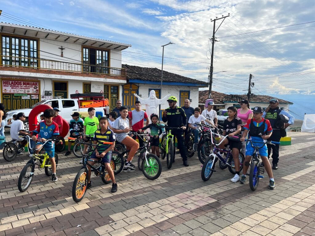Belalcázar, Caldas. Ayer, en el marco del Día Mundial de la Bicicleta, el municipio de Belalcázar vivió una jornada llena de significado, cultura y compromiso ciudadano, gracias a una actividad liderada por la Policía Nacional a través del Grupo de Turismo y Patrimonio, en articulación con la Administración Municipal, el Cuerpo de Bomberos Voluntarios y las unidades de tránsito locales.